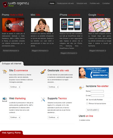La nostra Web Agency nasce nel 2006 ed è in grado di affrontare ogni tipologia di percorso, accompagnando il cliente nella tortuosa strada del posizionamento organico. Infatti, avvalendoci di nostri Software specifici, siamo specialisti nella gestione totale del Web, dalla realizzazione di siti internet al posizionamento organico di parole chiave. Siamo i pionieri nell'utilizzo della tecnologia Web Landing per le campagne di posizionamento, ottenendo il massimo rendimento per ogni progetto.